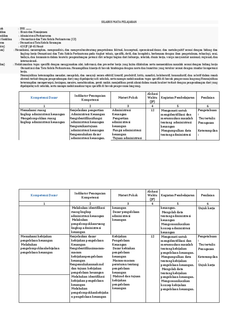 Administrasi perkantoran kompetensi keahlian silabus front office kelas 11 dan 12 smk revisi 2017.